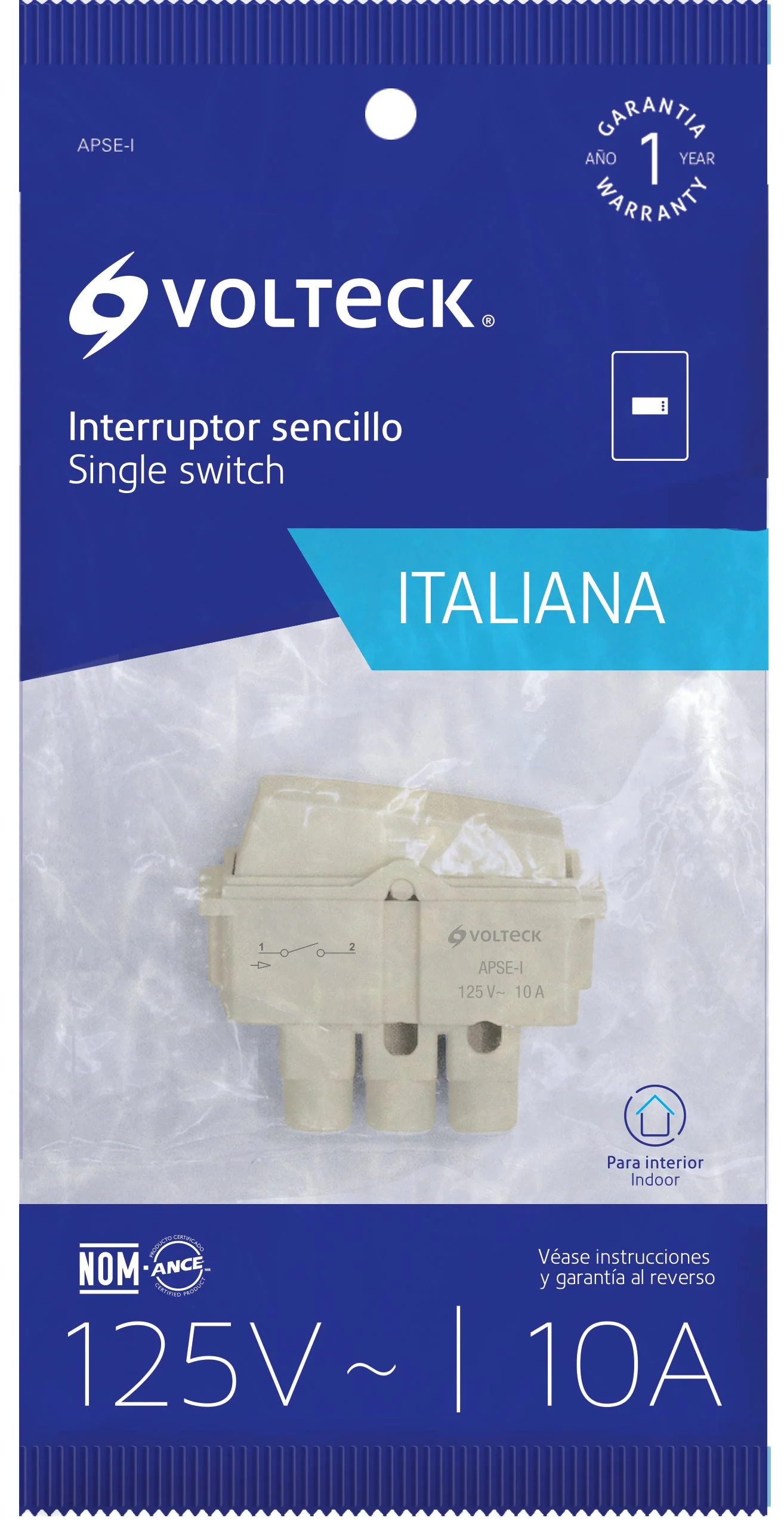 INTERRUPTOR VOLTECK SENCILLO BLANCO ITALIANA