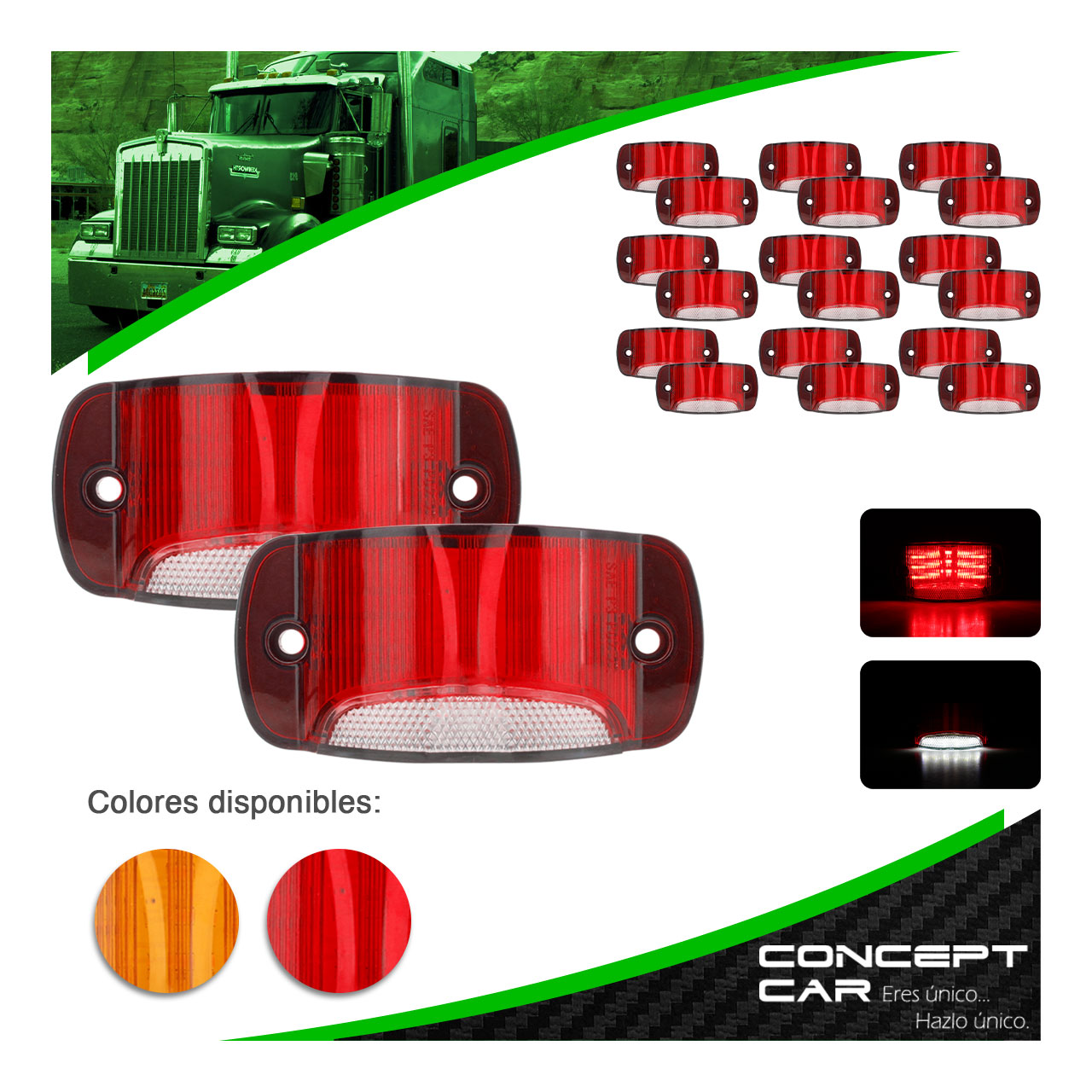 PAR DE PLAFON PARA CAMION LATERAL ROJO ESTROBO 12/24V