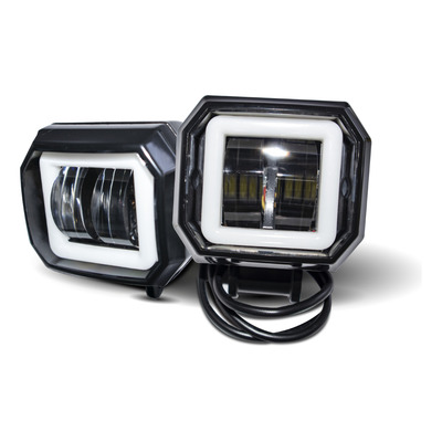 PAR DE FAROS AUXILIRES CUADRADOS CON ARILLOS DE GEL C/LUPA ESTROBOS ROJO
